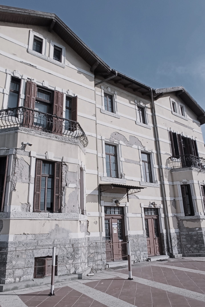 Το κτίριο εκλεκτικιστικού ρυθμού, κτίστηκε γύρω στα 1909 (αγνώστου αρχιτέκτονα) και χρησιμοποιήθηκε αρχικά ως κατοικία του Διευθυντή των Ανατολικών Σιδηροδρόμων. Αργότερα εκεί στεγάστηκαν οι τεχνικές υπηρεσίες του ΟΣΕ. Το κτίριο χαρακτηρίστηκε κατεδαφιστέο προκειμένου να ανοιχθεί η δυτική είσοδος της Θεσσαλονίκης. Τελικά το 1997 αποφασίστηκε να μην κατεδαφιστεί αλλά να μετακινηθεί μερικές δεκάδες μέτρα νότια. Τον Ιανουάριο του 1998 έγινε τελικά η μετακίνηση σε ευθεία γραμμή και σε απόσταση 40 μέτρων, δι’ ολισθήσεως επί σιδηροδοκών. Η κύρια όψη του «έβλεπε» αρχικά στην οδό Σταθμού.